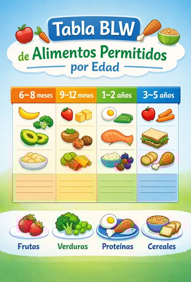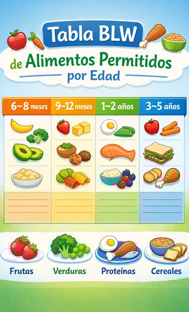 Tabla BLW de Alimentos Permitidos por Edad